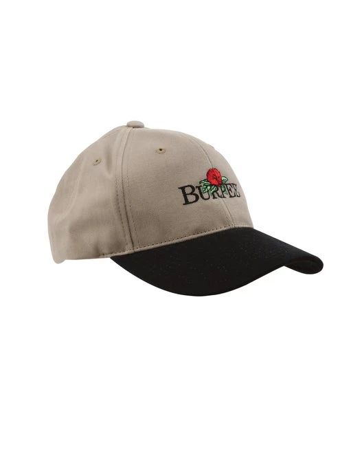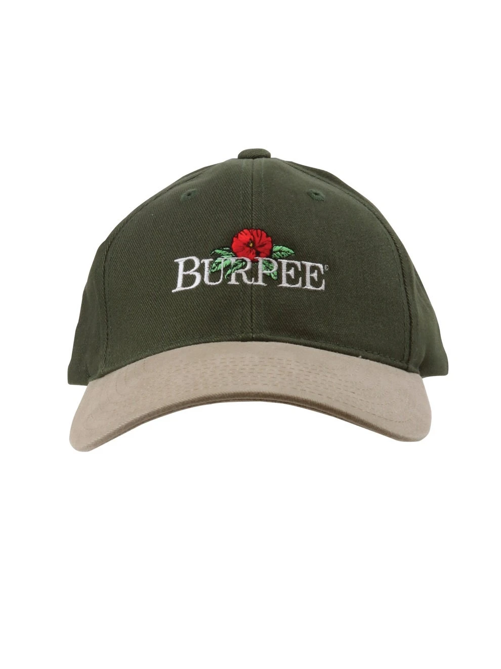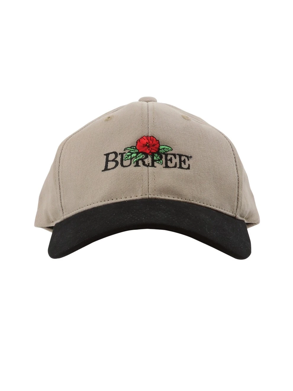 Our Burpee logo baseball cap features the best of both worlds with a low profile and a structured fit, making it a two-tone winner. Made with 100% brushed cotton twill and adjustable Velcro tab closure, ensuring that one size fits most.