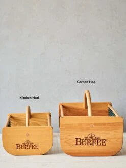 New England clammers originally used these wire and wood baskets to harvest and clean their catch. Savvy gardeners quickly discovered the baskets, using them to gather and clean vegetables, flowers, plants and tools. Crafted from pine and birch woods with a steam-bent oak handle, weather resistant hand-rubbed oil finish and vinyl coated mesh basket. Garden Hod size 19 1/4″ x 11″ x 7 1/4″.