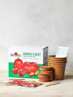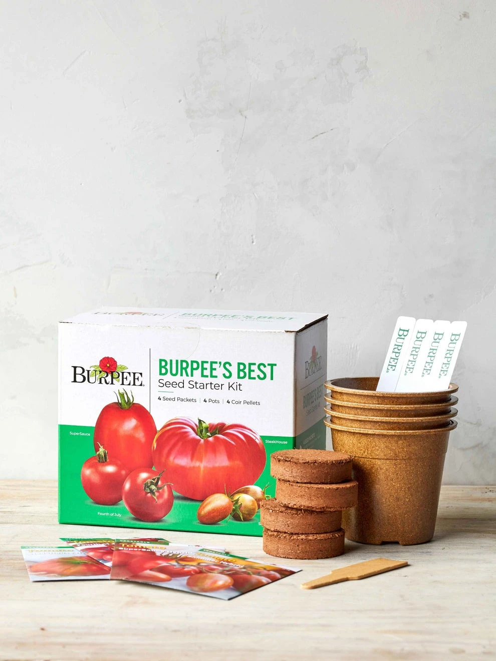 Created for tomato lovers, we have included the best of the best. Our Fourth of July is our earliest tomato producing outstanding, delicious yields, SuperSauce a perfect Roma with aroma and our largest most productive sauce tomato, SteakHouse produces massive tomatoes with delightful heirloom taste and Shimmer is the best tasting cocktail type tomato you will ever snack on. The kit also includes 4 Bio degradable pots, 4 expanding coir pellets & 4 plant markers to easily grow or start seeds indoors. Suitable as a gift for existing and new gardeners.
