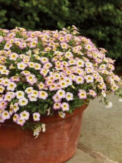 So fun and pretty — unique two-tone coloration and frilly form, like a sassy party dress! We just love it for window boxes, baskets, anywhere it can show off its bountiful growth and big, constant show of cascading flowers. Tolerates hot summer weather in style. Super-productive and no deadheading necessary, so you can count on tons of low-maintenance beauty.