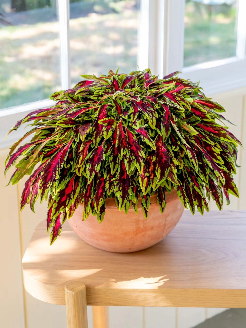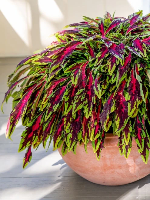 This striking coleus sets containers ablaze with bright, colorful flair. Leaves have hot-pink centers that mellow into splashes of rich burgundy and cool lime-green tips. Low-maintenance and perfect for growing in smaller spaces.
