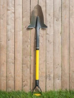 Trouble digging in rocky or dense clay soils? Difficulty transplanting or separating highly rooted and fibrous plants? Want to use less effort to do what must be done? With these spades your toughest tasks are as much as 80% easier than with regular shovels. The blades are made of high carbon manganese steel that is thicker and harder than normal shovels, hold their edge well and are powder coated with an epoxy resin for durability and ease of cleaning. The reinforced fiberglass handles are among the lightest and strongest shovels available and are weather resistant and non-conductive.