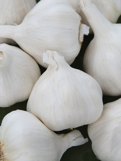 Softneck variety that is medium in size with a short and round bulb. The skin is very tight, which is a little hard to work, but the tight, coarse tunics keep cloves fresh in storage for up to 8 months. Nice and mild flavor with medium heat. Harvest fall planted garlic the following season, late spring or early summer, about 240 days from planting. Harvest spring planted garlic the same season, about 90 days from planting. Averages 25 cloves per bulb.