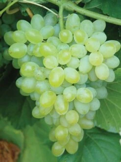One beauteous green grape with outstanding fruity flavor and big-time yields. Vines produce tight clusters of 3-gram berries: with humongous yields from 35-50 lbs. per vine. Grapes have soft texture and few seed traces: perfect for fresh eating, jams and jellies.