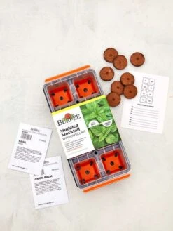 Infuse drinks with the refreshing taste of two distinctive herbs. With aromatic Sweet Basil and Lemon Balm leaves ready to harvest right at home, happy hour starts at any time you choose! The Muddled Mocktail Windowsill Herb Kit comes with two packets of seeds (one of each herb variety), Burpee’s reusable 8 XL Cell SuperSeedâ„¢ seed starting tray, plus 8 expanding coir soil pellets. After harvesting or transplanting your herb plants, you can wash the seed starting tray and reuse to grow more herbs.