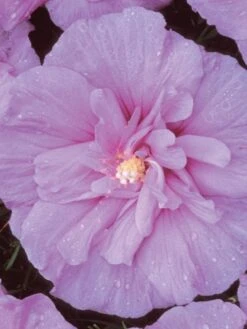 A popular new version of the old Rose of Sharon. Lavender petals are accented by deeper rose veins and extra, swirled inner petals. Luscious colored and tropical looking, large Hibiscus blooms appear July to September. Plants form multi-stemmed vase-like shrubs or trees. A garden worthy plant that has won awards in Europe, and all the way down to Texas. Heat tolerant. Proven Winners USPP12619.