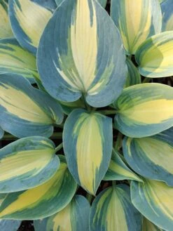 This robust hosta changes color, like magic! In the spring the leaves have blue-green edges and a bright yellow center; as the summer goes on, the margins grow wider and the yellow fades to cream. Lavender flower spikes appear in summer and attract hummingbirds. Slightly cupped, thick foliage is resistant to slugs. An easy, colorful way to brighten up your shady spots!