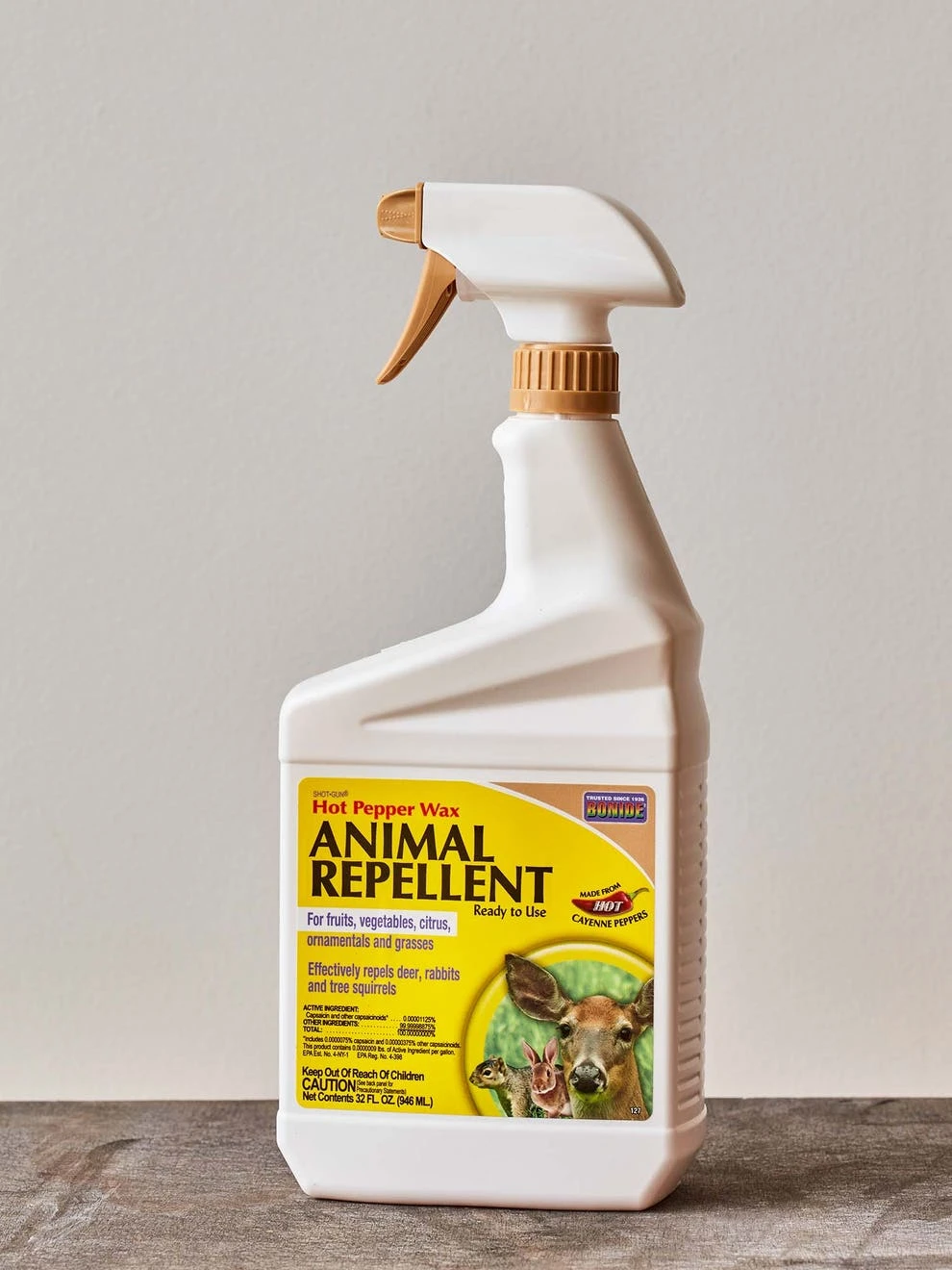 Proven, tested, trusted-Hot Pepper Wax gives your plant protection that works! An earth-friendly mix of cayenne peppers and highly-refined paraffin wax, this liquid is registered, non-toxic, non-odorous, and safe to use on vegetables, ornamentals, shrubs and trees. Safe to use indoors. 22 oz. spray bottle that is ready to use or in convenient 16 oz. concentrate. Concentrate makes 4 gallons at the normal rate.