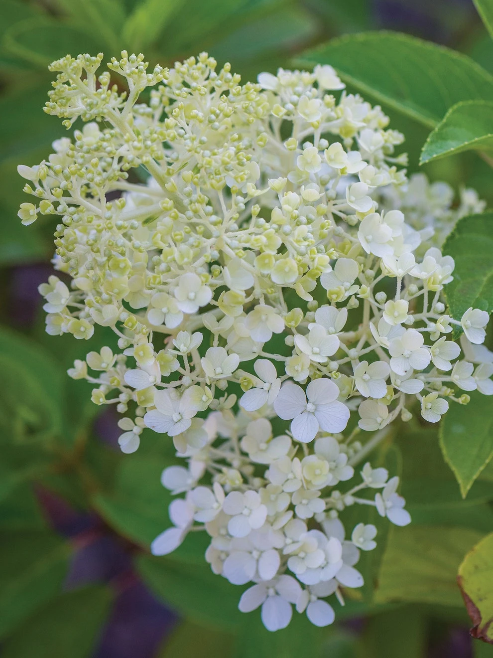 Masses of showy, large white flowers up to 11” long are held upright on strong, stiff stems covering low growing plants early in the season, from July through fall, taking on a soft pinkish blush as they mature. The compact mounded plants grow only 2-3’ tall, spreading 3-4’ wide with a neat mounded habit. Perfect for small gardens, in containers, for a low growing hedge, and the flowers are great for cutting, fresh or dried. Blooms on new wood so the flower buds will not be damaged by severe winters. Proven Winners USPP22782.