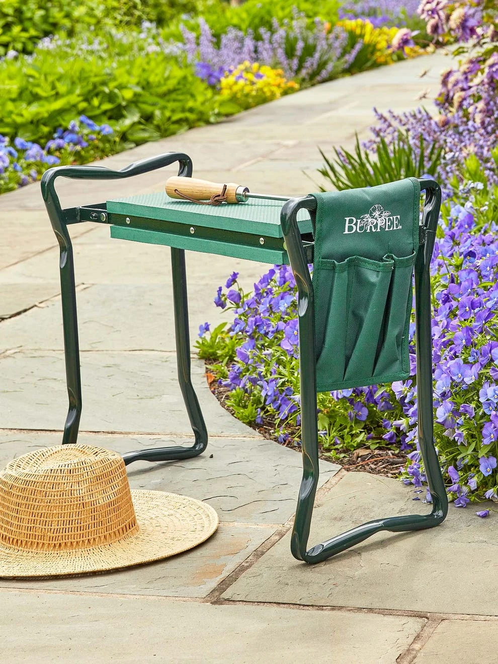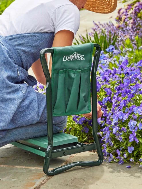This Kneeler Seat is a boon to those who love gardening but hate how their back feels after a day at it! Sit in style on the padded cushion supported by a heavyweight, powder coated steel frame. If you like, turn it upside-down to provide a padded kneeler with handles to grab when youre ready to stand up. After use, the kneeler folds flat for storage. Measures 20″ high. 17″ high above ground when used as a seat.