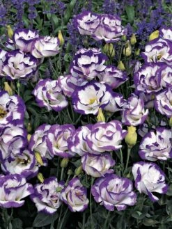 You have to grow this heat-loving annual to really appreciate the beautiful, rose-like flowers. Lisianthus are native to the American Southwest, and this improved variety from Central America is taking gardens by storm. The 3-3 1/2″ white petals are rimmed in rich purple. The narrow, upright plants grow 18-22″ tall and look best-planted 7-10″ apart. Can be grown in containers, in the middle of beds or in the cutting garden. Good vase life and unique silvery green foliage makes this durable annual a welcomed addition to fresh arrangements.