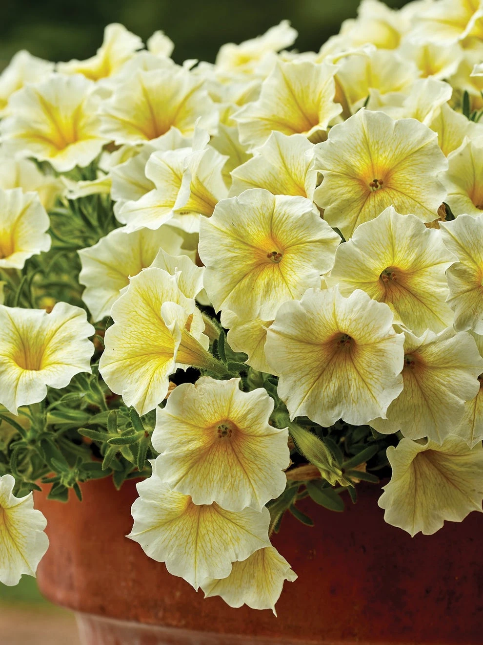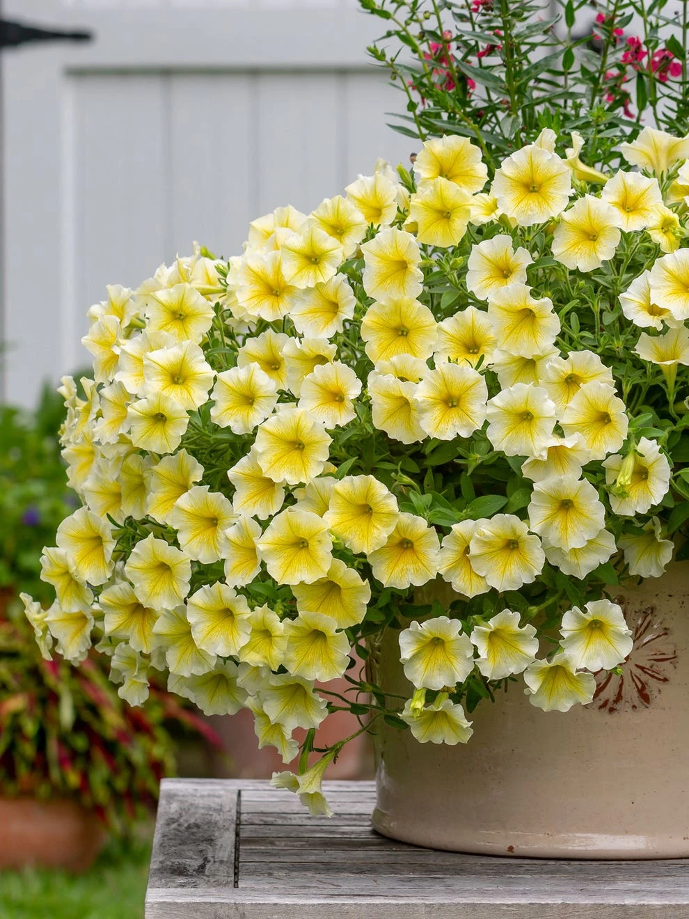 Real yellow, not mellow yellow — the brightest yet! Unlike other light-colored petunias, this one’s got a bold look and plenty of staying power. Profuse blooms cover a compact plant, with nice dark-green leaves for sharp contrast. Lively on its own, but imagine how fabulous it will look combined with red or purple flowers, either in your flower beds or your favorite multi-colored pots.