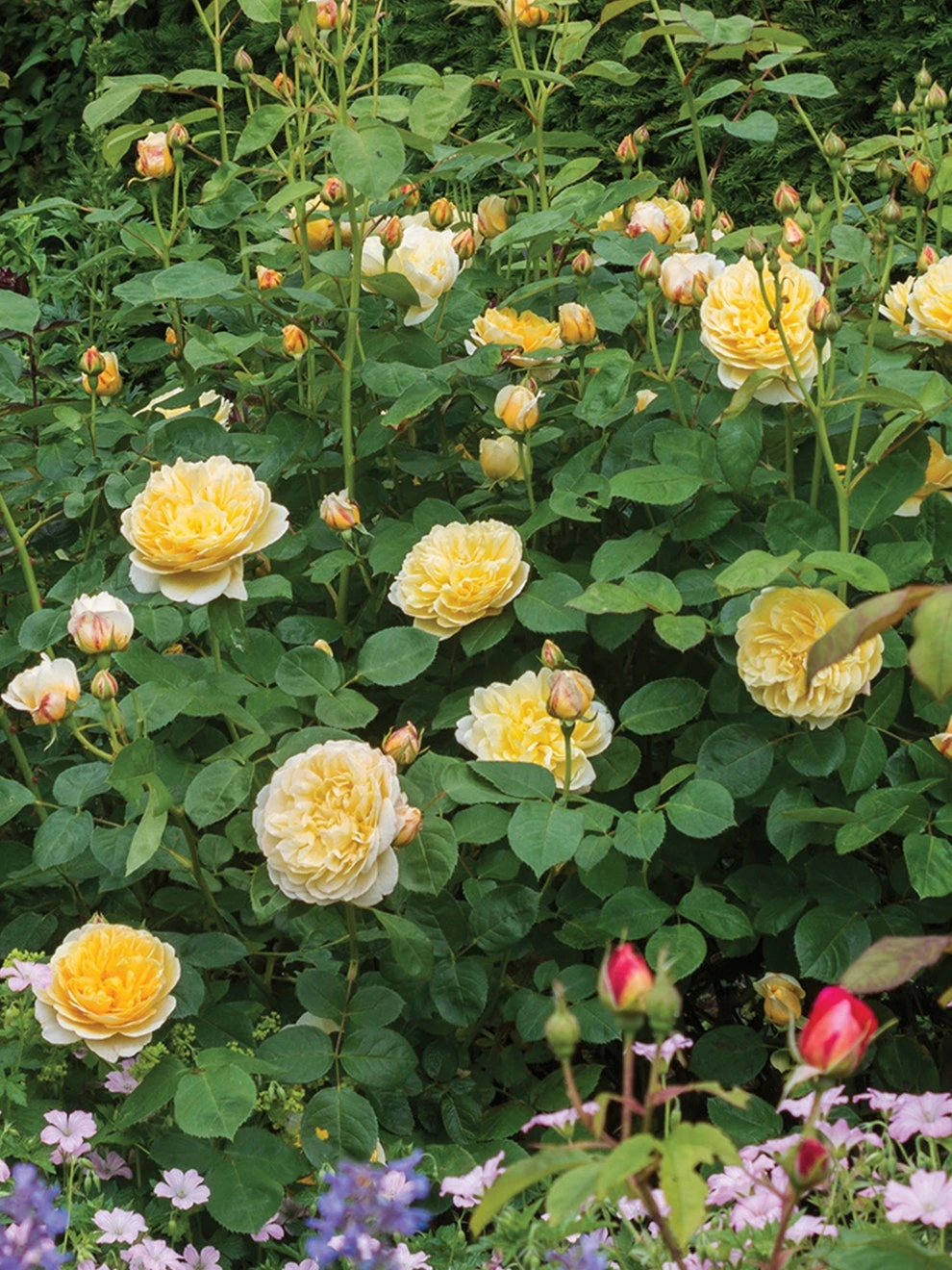 The most stunning English rose with lovely tea fragrance and exquisite flowers of a soft yellow color. ‘Charlotte’ has excellent green foliage and a compact, bushy habit, with even, upright growth. One of the winter cold hardiest of David Austin Roses.