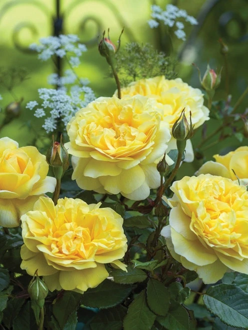 We are enchanted by this glorious rose with unfading, intense-yellow full, double blooms—accessorized by the ultra-rich lemony fragrance that grows sweeter and stronger as flowers mature. David Austin-bred beauty’s prettily-formed rounded flowers—the outer ring of petals enveloping an informal group of luminous petals inside—are complemented by attractive shiny, green foliage. Hardy, medium-sized shrubs’ height makes ‘The Poet’s Wife’ perfectly scaled for the front of the border.