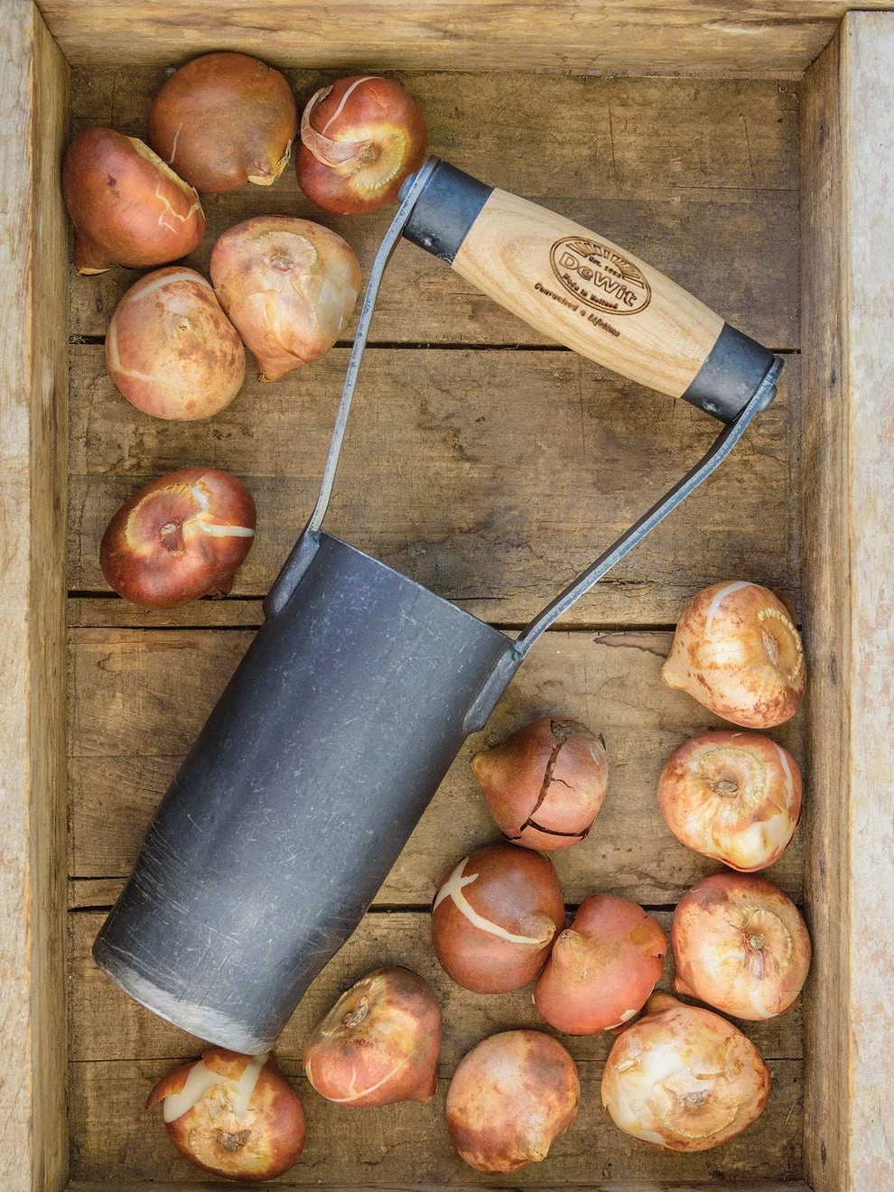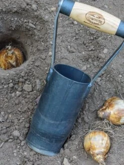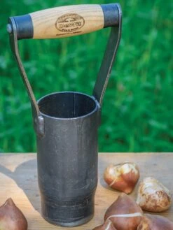 Planting bulbs is a breeze with our short handle bulb planter. The sharpened cutting edge slices through soil effortlessly, and the special design allows soil plugs to fall out easily. From tulips to daffodils and hyacinths to gladiolus, this tool does it all. Constructed of carbon steel with an ash hardwood handle and guaranteed to last a lifetime. Dimensions: 10.5″ L x 2″ W x 2.75″ H; 0.75 lbs.