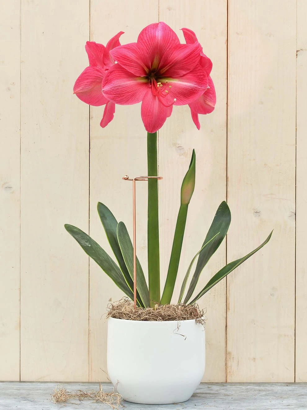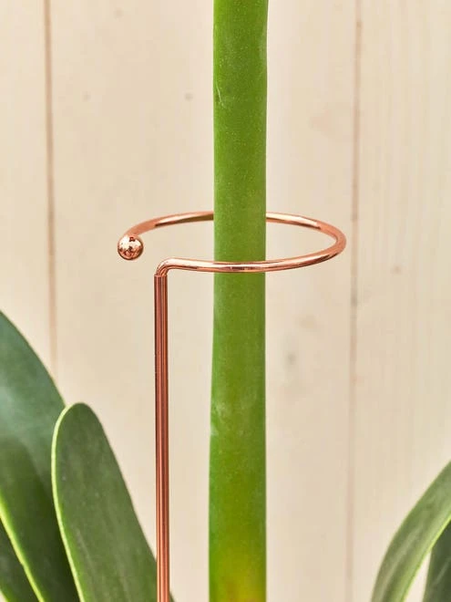 Keep orchids, amaryllis and other tall, single-stem houseplants well-supported using this adjustable stake kit. The kit comes with 2 support rings (2.5” and 4”) and 3 extensions to adjust the stake from 6” to 16” long, supporting plants up to 12” above the soil line. Sturdy design has an attractive copper finish that enhances indoor plant decor! Accommodates a wide range of plant sizes. After use, wipe clean with soap and water and store in the included felt Burpee pouch.