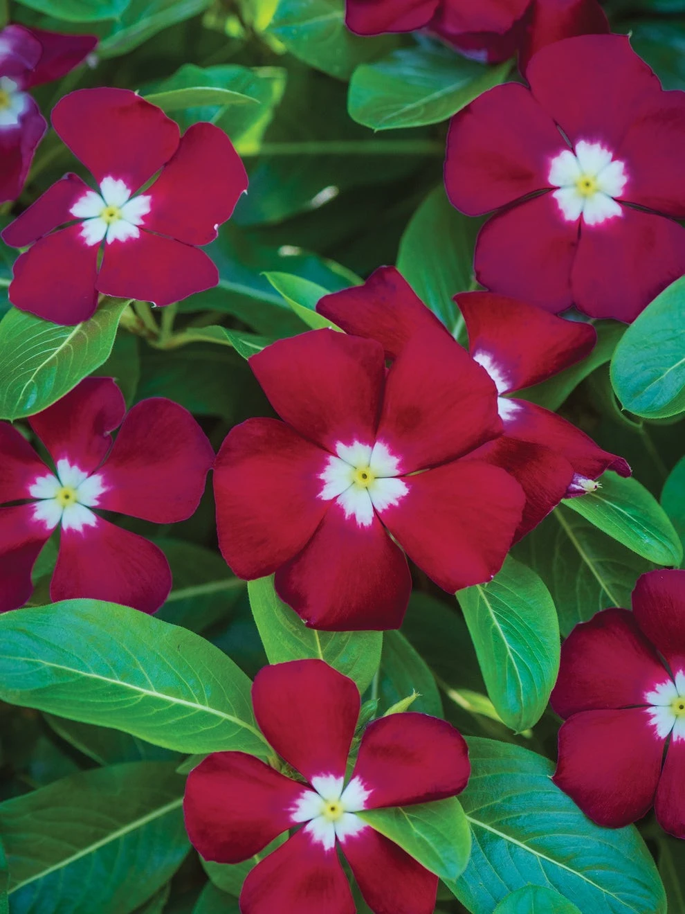 Let’s offer a toast to this remarkable vinca, which displays its gorgeous wine-dark burgundy blooms even in the hottest dog days of summer—and asks so little in return! A low maintenance gardener’s dream that can take the heat and drought alike, and isn’t bothered by budworm and other pests.